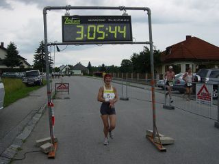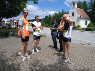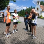 Wir machten den 3. Platz in der Mixed-Staffel. Ich besuchte kurz die Labestation für Cola und Kuchen. Danach warteten wir im Ziel auf Reinhard. Unsere 2. Staffel mit Franzi und Reinhard beendeten den Lauf mit 3 Stunden und 45 Minuten. Super, Gratulation! Reinhard gab mir Recht, es war gut von mir, in der Pause auf das Kuchen essen zu verzichten, er hatte nehmlich Seitenstechen bekommen.