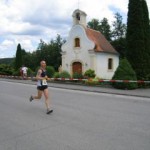 Nun war es auch für mich soweit, der 1. Wechsel erfolgte. Großteils läuft man auf Asphaltboden, ein Teilstück geht über einen Feldweg mit leichten Anstieg über eine kleine Brücke rauf auf die Landstraße entlang danach wieder in den Ortskern rein bei der Labestation 2 vorbei und leicht abschüssig auf die Gerade bei Start/Ziel (Rundenzähler) durch. Es ging mir sehr gut und die 5 Runden waren relativ schnell wieder vorbei (in 43:28). Ich hatte aber nichts dagegen, das ich jetzt Pause machen darf. Aber, es wird ja erst interessant, wie wird es sein, wenn ich nocheinmal rauslaufe um meine restlichen 10,550 Kilometer zu laufen? Noch nie, war ich in so einer Situation, auch für Michi war es neu, bei einem Wettkampf eine Pause zu machen und anschließend wieder voll zu laufen. Michi hatte den Vorteil, er wird es früher als ich wissen, wie das Gefühl ist. Auch bei Franzi und Reinhard wird wieder gewechselt. Reinhard kommt plötzlich von der Labestation 1 (schräg gegenüber) mit einen Apfelstudel zurück. Er meinte, ob ich auch ein Stück möchte?! Ich sah ihn nur mit großen Augen an, meint er das ernst? Nein, danke ich trau mich nicht, muß ja noch 5 Runden laufen, aber Reinhard Du ja auch noch! So schnell konnte ich gar nicht schauen, stopfte sich Reinhard ein Stück nach den anderen in sich hinein. Ich bewunderte ihn um seinen Mut und um die gute Mehlspeise. Nahm mir aber vor, sobald ich mit dem laufen fertig bin, werde ich die Labestation besuchen. Michi kam vorbei und wir informierten ihn beim vorbeilaufen, es gibt Kuchen. Das ist nehmlich ein Zauberwort – Michi liebt süße Speisen. Ich weis, das wird ihn besonders motivieren schneller zu laufen um sich der Köstlichkeiten, (noch dazu handelt es sich dabei um selbstgebackene Burgenländische Kuchen) rascher widmen zu können. Christina und Christine waren super, sie feuerten uns an und machten die Welle. Es war immer wunderbar und so motivierend bei unserem Fanclub vorbei zu laufen. Ich beneidete jetzt Michi, er war mit seinem Lauf fertig und ich mußte wieder auf die Laufstrecke. Er hat auch eine gute Zeit vorgelegt. Seine Gesamtzeit für die 2 x 10,550 Kilometer war 1 Stunde und 37 Minuten. Es war gar nicht so schlimm wie ich befürchtet hatte und ich kam bald wieder in den Laufrhythmus hinein. Schon als ich in der ersten Runde vorbei kam, was sah ich da?, Michi bei der Labestation mit vollem Mund und grinste. Ich hoffe, er lässt noch was von die Kuchen über. Endlich war es auch für mich geschafft. Michi wartete im Ziel auf mich. Unsere Gesamtzeit war 3 Stunden und 5 Minuten.