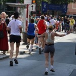 Ich konnte vom Ziel den vereinbarten Platz, wo ich mich mit Michi treffen wollte, sehen. Ich wusste,da Michi immer wieder den Platz zum fotografieren wechselte, erst später dort sein wird. Das letzte malsah ich ihn zwischen Kilometer 41 auf 42. Wenn ich ihn sah, war das schon immer ein Energieschub.Schließlich hat er vom Marathon 1.800 Fotos gemacht. Jetzt sah ich ihn, rief ihm meine Zeit zu und