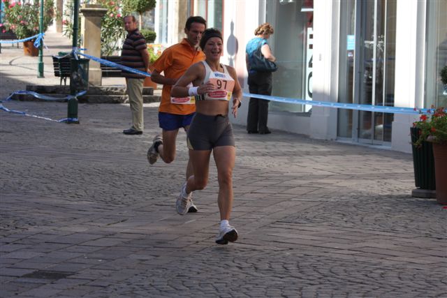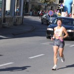 Anschließend spazierten wir noch mit unserem Hund ein bischen durch die Gegend. Michi setzte sich noch ins Auto und hat Zeitung gelesen. Wie sehr habe ich ihn da beneidet. Ich habe angefangen mich warm zu laufen und musste dabei feststellen, von flachen Burgenland ist da keine Rede. Um kurz nach 10.00 Uhr gingen wir Richtung Start, der in der Fußgängerzone war. Jetzt traf ich viele bekannte Gesichter. Mit Vanessa stellte ich mich im Startblock auf. Die Läufer, die ÖM und Landesmeisterschaften liefen, durfte sich ganz vorne aufstellen. Es wurde Kontrolliert ob wirklich nur die Läufer vorne stehen, die einen Punkt auf der Startnummer hatten. Der Punkt war das Zeichen, das man bei der ÖM und LM gemeldet war. Um 10:20 Uhr sollte der Start sein, jedoch die Frau Bürgermeisterin hat noch eine Ansprache gehalten und das Mikrofon auch noch an andere weiter gereicht. Es hörte nicht wirklich wer zu. Ich habe mich mit ein paar Läufer und Läuferinnen unterhalten. Wir waren uns einig, das die Laufstrecke sehr anspruchvoll ist. Einige Steigungen und sogar Kopfsteinplaster gibt es. Die Herren eine Reihe vor uns, sagten, man muß hier ca. 2-3 Minuten auf die PB dazugeben. Das darf nicht wahr sein, ich war völlig fertig. Wenn ich von meiner letzten HM-Zeit ausgehe und davon muß ich, da meine PB schon eine Weile her ist, dann wird es mit den 1:35 sehr knapp. Vanessa hat eine HM-PB von 1:36 und Carola mit 1:25. Es müssen aber 2 von der Mannschaft unter 1:35 laufen. Ohne noch einen Schritt gelaufen, schwitzte ich. Jetzt war es soweit, der Start erfolgte, jedoch um einige Minuten verspätet. Kam sehr gut weg. Die Fußgängerzone runter und dann links in die Kurve und danach rauf. Das fängt ja gut an. Gleich zu Beginn des Laufes muß man eine Steigung laufen. Nach einiger Zeit waren wir plötzlich wieder am Startbogen und es ging wieder runter die Fußgängerzone. Ich habe bis jetzt keine Ahnung, wie lange diese kleine Runde war. Jetzt ging es rechts raus von der Fußgängerzone und plötzlich bemerkte ich, tatsächlich habe ich meinen MP3-Player im Auto vergessen. Naja, muß halt heute ohne gehen. Jetzt sah ich Michi mit der Fotokamera stehen. Ich lächelte ihm zu, obwohl mir nicht nach lachen war. Keine Musik im Ohr, das bin ich erst ein einziges mal gelaufen, sogar im Training habe ich Musik. Ich tröstete mich damit, es sind 3 Runden, außer es kommen noch irgendwelche Überraschungsrunden, da werden sicher überall Leute stehen zum anfeuern und das ist dann besser als Musik. Auf Zuschauer musste ich warten, bis ich wieder in die Fußgängerzone zurück kam. Die Strecke war sehr einsam. Ich suchte und suchte ob ich irgendwo Kilometerschilder finde. Ich lief und hatte absolut keine Ahnung wieviele Kilometer ich hinter mir hatte. Das wäre nicht so schlimm, aber die Kilometerzeit war das Problem. Ich hatte als Vorgabe, nicht schneller als 4:10/Km zu laufen, da ich sonst mit den Laktatwerten nicht so gut durchkommen werde. Siehe da, jetzt fand ich ein Schild am Galgen hängen mit 1. Runde 3 Km. Besonders weit bin ich noch nicht gekommen, obwohl es mir schon eine Ewigkeit vorkommt, das ich Unterwegs bin. Ich drückte den Kilometer auf meiner Uhr ab, mit der Hoffnung den 4. auch wieder zu sehen/finden. Im laufe dieses Laufes fand ich noch einige solcher Schilder, aber leider immer die falschen. Irgendwo stand dann 3. Runde 19 Km,…… Eigentlich ging so alles irgendwie schief an diesem Tag. Es ging einige Zeit auf der Hauptstraße entlang dann wieder in einen Stadtteil rein und natürlich wieder rauf. Die Strecke mit dem Kopfsteinpflaster lief ich auf dem Gehsteig. Ich nahm lieber in kauf, die Gehsteigkanten runter und rauf als auf dem lästige Kopfsteinpflaster die Steigung zu laufen. Ich dachte, die Runde wird niemals enden. Endlich kam eine Kurve und es ging in die Fußgängerzone runter. Beim Zielbogen, der war einige Meter versetzt zum Startbogen, war eine Uhr, die zeigte 31 Minuten an. Also, ich war am Boden zerstört. Ich kann diese Zeit von der Runde sicher nicht noch 2 Runden lang halten und dann wird es verdammt knapp. Hatte natürlich vergessen, das ich diese kleine Ehrenrunde zu Beginn mitzählen muß. Also mit hängenden Kopf ging es ab in die 2. Runde. Ich sah Michi wieder unten in der Kurve mit der Kamera stehen, jedoch diesmal konnte ich mir kein Lächeln abringen. Richtig grantig muß ich ausgesehen haben. Auf der Strecke in der 2. Runde traf ich dogrun und wir bejammerten uns gegenseitig. Er erzählte mir, das er am Vortag noch einen schnellen 10er gelaufen ist. Den Vollmondlauf hätten wir uns etwas anders vorgestellt. Jedoch, dogrun beschleunigte sein Tempo und zog nach vor, wo Carola lief, die mich in der ersten Runde nach dem fast einzigen Schild (3 Km) das ich fand, überholte. Gegen Ende der Runde fing es an, das es mir besser ging. Nicht umsonst laufe ich die Marathondistanz viel lieber, umso länger ich laufe umso wohler fühle ich mich. Als ich in die Fußgängerzone kam, war wieder mein Lachen da, motivierte die Leute zum anfeuern und die gingen auch mit. Jetzt in die Letzte Runde. Wie in den beiden Runden zuvor, stand Michi da und diesmal grinste ich in bis über beide Ohren an, damit er weis, es geht mir gut und ich fühlte mich auch so. Ich kam Carola und dogrun immer näher. Für einen Bruchteil einer Sekunde überholte ich die Beiden. Carola forcierte das Tempo und dogrun blieb zurück. Wieder hinter Carola mit etwas Abstand lief ich und war in Gedanken versunken. Ich freute mich nur über das laufen, es war zwar anstrengend aber schön. Ich dachte an liebe Lauffreunde, die heuer nicht so viel Glück hatten, weil sie Krank oder Verletzt sind und nicht oder nur wenig laufen konnten. Ich war einfach nur dankbar. Ein Polizist am Motorrad war plötzlich neben mir, zuerst dachte ich, jetzt wird überrundet. Nein, das kann nicht sein, ich bin in der 3. Runde und die sind schon längst im Ziel. Ich fragte ihn einfach, ob ich ein Stück mitfahren dürfte. Er meinte, da