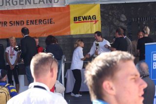 Ich habe die Nacht schlecht geschlafen, als um 6.00 Uhr der Wecker läutet, war ich natürlich schon lange vorher munter und sehr müde. Also raus aus dem Bett und das übliche Programm, wie vor jeden Wettkampf, nur etwas nervöser als sonst. Michi beruhigte mich immer wieder. Er sagte, Du hast brav trainiert, also wird alles gut gehen. Die Aufregung war eigentlich gar nicht so sehr wegen mir, aber es ist schon etwas anderes, fürs Team zu laufen. Da trägt man einfach Verantwortung. Carola hat mir und Vanessa noch wissen lassen, das zwei vom Team unter 1:35 Stunden laufen müssen – falls nur unsere Mannschaft bei der Wiener Landesmeisterschaft antritt – dann gibt es diese Limitvorschriften. Und nach meinen Letzten HM weis ich, es ist alles möglich, wenn man einen Einbruch hat, sind 1:35 schwer zu laufen. In Eisenstadt angekommen, gingen wir die Startnummern abholen – hat alles super geklappt. Es war noch sehr kalt, aber ich wusste, bis zum Start um 10:20 Uhr wird es sehr warm werden.