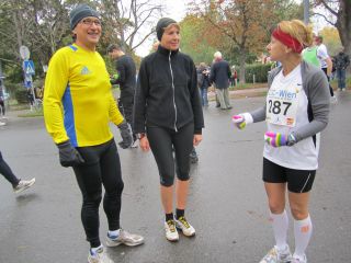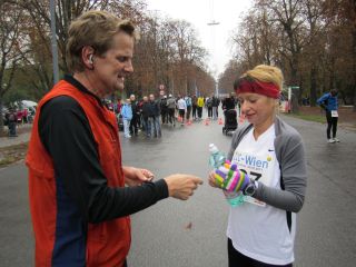 Am Start habe ich viele, viele Freunde getroffen. Manche laufen 7 km, manche HM, die anderen den Marathon und einige sind als Unterstützung zum anfeuern da. Martin, er ist früher „nur gelaufen“, jedoch seit einiger Zeit schon, auf Triathlon umgesattelt treffe ich in der „Aufwärmrunde“.