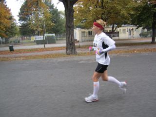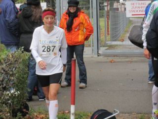 Er möchte heute den HM unter 1:30 laufen. Da ich auf jeden Fall mit 4:15/km beginnen möchte, wird Martin an meiner Seite starten und mitlaufen. Es ist heute absolutes traumhaftes Laufwetter. Ich stelle mich absichtlich in die Mitte des Starterfeldes um nicht den Fehler zu machen, mich mit den anderen mitreißen zu lassen und gleich nach dem 1. Km blau zu sein. Es ist so weit und wir starten. Martin und ich steckten etwas fest in der Masse und daher wurde der km 1 mit 4:36 absolviert. Für mich egal, ich habe ja noch 41 km, aber für Martin tat es mir leid. Ich sagte ihm auch, es ist kein Problem, er kann ruhig davon laufen, wann immer er das Gefühl hat, er möchte schneller werden. Die nächsten beiden km wurden perfekt in 4:15 gelaufen. Km 4 war wieder etwas zu langsam (4:20), dafür erledigten wir km 5 in 4:04. Der konnte aber nicht stimmen, das hätte ich sicher gespürt, wenn ich plötzlich so flott gewesen wäre. Die erste Runde haben wir in knapp über 30 Minuten hinter uns gelassen. Martin war noch neben mir und ich sagte ihm wieder, wenn er losziehen möchte, dann soll er das ruhig tun. Da er aber in Letzter Zeit eher wenig trainiert hat, hat es für ihn gepasst. Ich fühlte mich in der 2. Runde so richtig wohl und kam sogar auf den Geschmack, toll wieder einen Marathon zu laufen. Meine Kilometerzeiten bestätigten das auch. Bald werde ich meinen Mann treffen, er ist mit dem Rad unterwegs und wird mir meine Verpflegung geben (Gel und Wasser). Leider, irgendwann war Martin hinter mir und ich verlor ihn aus den Augen. Jetzt reicht mir mein Mann die Verpflegung und ein paar motivierende Worte gibt er mir auch noch mit. Als ich in die 3. Runde ging, war ich knapp unter einer Stunde und tja die Sache sah gut aus. Die Füße fingen jetzt etwas an zu rebellieren und ich musste schon etwas an Überredung aufwenden, das sie auf Kurs bleiben. Ich sehnte meinen Mann herbei der mir wieder meine Verpflegung reichen sollte. Da stand er auch schon und versorgte mich. Ich habe die Hälfte in 1:29:XX hinter mir gebracht. Jetzt begann die 4. Runde und das sterben. Meine Kilometerzeiten wurden schlechter und meine Füße immer müder. Wieso wollte ich eigentlich heute einen Marathon laufen? Eigentlich will ich jetzt gerne nach Hause. Es sind noch 2 Runden zu laufen, für mich unvorstellbar. Egal, mach den Marathon als Long jogg fertig. Nein, hör ganz auf. Ich fühlte mich hin und her gerissen. Irgendwie war ich damit so beschäftigt mich selbst zu bemitleiden und der Kampf zwischen weiterlaufen oder aufhören, das die 5. Runde auch zu Ende ging. Jetzt noch 7 Kilometer. Niemals habe ich aufgegeben oder nicht gekämpft und das soll auch heute so bleiben. Jetzt wusste mein Mann, ich brauch seine Unterstützung und daher begleitete er mich mit dem Rad. Ganz ruhig sprach er auf mich ein. Es tat so gut, ihn neben mir zu haben. Jeder der den LCC-Marathon schon gelaufen ist, der weiß, es ist ein sehr einsames rennen. Dass ich die Letzte Runde noch so gut geschafft habe, verdanke ich meinen Mann. Ein paar Meter noch ins Ziel. Ich versuche wirklich, nochmals alles zu geben, aber es fühlt sich an, als ob ich in Zeitlupe laufe. Ich komme mit 3:10:01 durchs Ziel. Irgendwie werde ich gewisse Zahlen nicht los. Vor 4 Wochen in Berlin waren es 3:01:19!