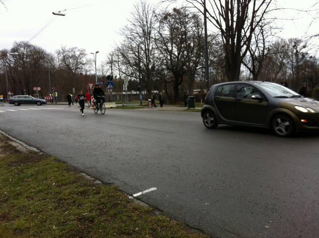 Ich laufe wieder von zu Hause zum Start. Dort hole ich mir meine Startnummer ab.