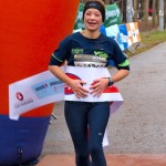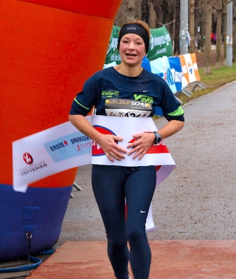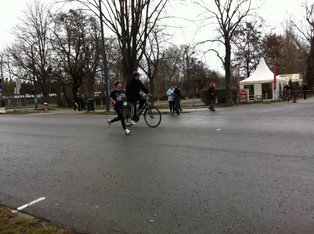 Ich stelle mich wieder etwas dahinter und nicht gleich vorne beim Start auf. Es wird pünktlich gestartet. Ich laufe los und überhole nur dann, wenn es auch leicht ist, also ohne lange Umwege zu laufen oder Verrenkungen zu machen. Dort wo ein Loch ist laufe ich durch. Meinen Ersten Kilometer stoppe ich in 4:21. Er ist langsam aber ich fühle mich sehr wohl. Mein Puls geht auf 179 und dort möchte ich mich einpendeln. Der Zweite Kilometer ist perfekt in 4:13. Ich fühle mich stark. Da kann ich mich auf meinen Körper verlassen, wenn der mir nach den ersten beiden Kilometer die Info gibt, dann passt das meistens immer. Immer wieder kontrolliere ich meinen Puls und sobald der nach unten geht, gebe ich wieder mehr Tempo. Heute lasse ich es nicht zu, das der innere Schweinehund mich besiegt und ich mich hinreißen lasse, langsamer zu werden. Nach Kilometer 5, laufe ich schon einige Zeit neben einen netten Herren, frage ihn, welche Distanz er heute macht? Als Antwort bekomme ich, den Halbmarathon. Super!, dann haben wir das gleiche Ziel. Gegenseitig ziehen wir uns voran. Zwischen Kilometer 7 und 8, steht mein Mann und reicht mir meine Wasserflasche. Mein Begleiter und ich sind noch immer zusammen, sobald einer etwas langsamer wird, gibt der andere mehr Power. Wir sind ein tolles Team. So geht es dann bis knapp vor Kilometer 14. Dann gab er mir zu verstehen, ich soll ohne ihn weiter laufen. Ich wusste das einige Damen vor mir sind, aber da ja erst im Wettkampf jeder entscheidet ob es 7, 14 oder 21 km werden, kann man nie wissen, an welcher Stelle man wirklich liegt. Mein Mann ruft mir zu, Du bist Erste Frau. Ich kann es nicht glauben, doch auch der Moderator kündigt es an, als ich bei Start/Ziel durch laufe, in die Letzte Runde. Jetzt passiert etwas, wenn ich daran denke, schlägt mein Herz gleich doppelt so schnell. Ich bekomme ein Führungsauto. So etwas kenne ich nur aus dem Fernsehen oder wenn ganz tolle berühmte Läufer bei einem Wettkampf mitlaufen. Heute, ja heute darf ich so etwas erleben. Ich will jetzt wirklich alles geben. Mein Puls geht rauf auf 183. Egal, ich laufe und bin mir aber unsicher, gehört das Auto wirklich zu mir? Hinten wird der Wind stärker, einmal verschlägt es mir sogar die Füße. Der Puls geht wieder runter auf 179. Ich versuche noch einmal das Tempo zu erhöhen. Endlich geht es jetzt wieder rauf auf die Allee. Ich kämpfe. Knapp hinter mir läuft ein Mann mit Kinderbuggy und Frau. Mit jeder Runde kommen sie mir näher. Der Vorderreifen vom Buggy will mich überholen. Ich lege noch etwas drauf um vorne zu bleiben. Wieder nähert sich das 3er-Gespann und überholt. Ich kann nicht mit diesem Tempo weiter laufen, sonst stehe ich bevor ich das Ziel erreicht habe. Ich verabschiede mich in Gedanken von meinen Führungsauto. Schade! Das Auto bleibt aber bei mir. Wieso?, bekommen die keine Info, ich liege jetzt an zweiter Stelle. Na gut, dann genieße ich es noch ein bisschen, bis sich der Irrtum aufklärt. Ich werde aber trotzdem versuchen, den Abstand so gering wie möglich zu halten und laufe so gut es geht weiter. Ich treffe meine lieben Freunde, die wieder gemütlich ihre Trainingsrunden laufen. JM fährt mit dem Rad vorbei (er ist heute 7 km in 25:31 gelaufen – also geflogen). Plötzlich ist er neben mir und feuert mich an. Das motiviert und ich hole das letzte für den Letzten Kilometer raus. Vorne, ein paar Meter ist das Ziel und ich laufe durch. Es sind 1:30:15 geworden. Ein Mitglied vom Veranstalter-Team holt mich ab. Jetzt erfahre ich es, die Dame in Begleitung mit Mann und Kinderbuggy ist ohne Startnummer gelaufen, daher habe ich den 1. Platz! Meine Freude ist groß, das Führungsauto hat sich nicht geirrt, es gehörte mir, die ganze 7-Kilometer-Runde! Mein Mann steht im Ziel und freut sich mit mir. Was für ein schöner Tag!